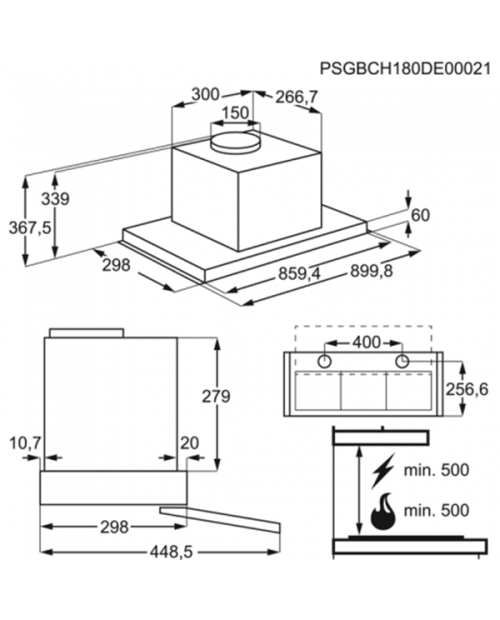 Potência de exaustão, nível máximo/mínimo: 600 / 250 m³/h