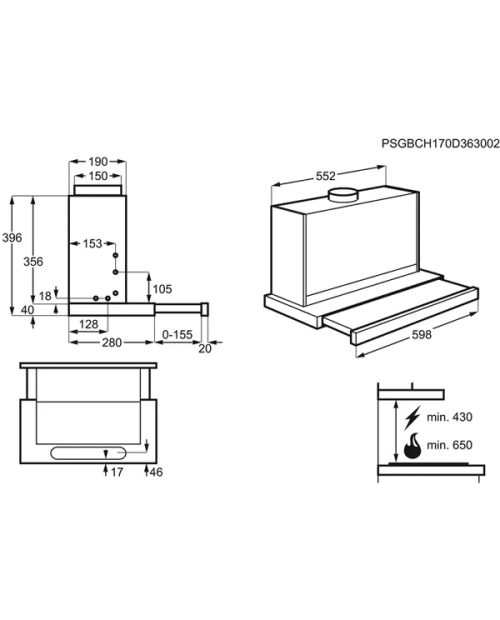 Instalação: Exaustão, 60 cm largura