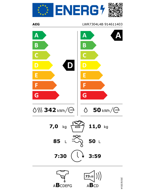Classe de eficiência energética do ciclo de lavagem/secagem (Regulamento (UE) 2017/1369): D