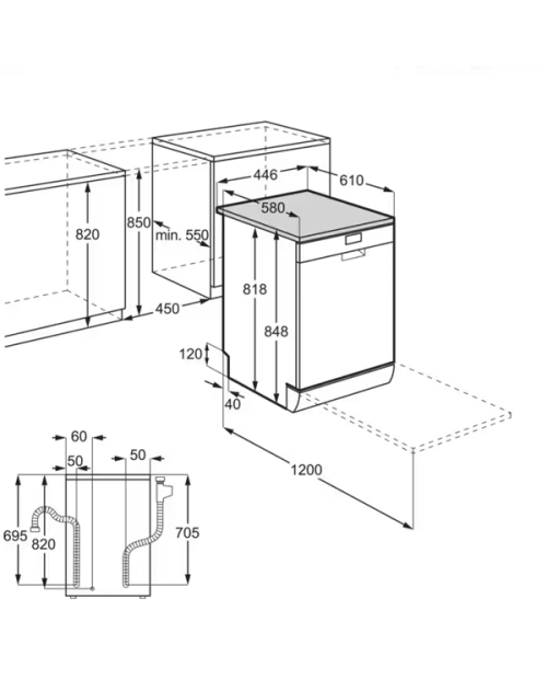 Dimensões A(min/máx)xLxP (mm): 820/850 x 450 x 570