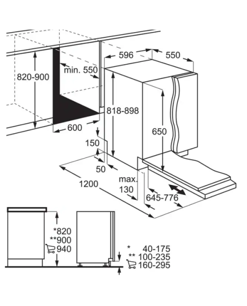 Dimensões A(min/máx)xLxP (mm): 820/900 x 600 x 550