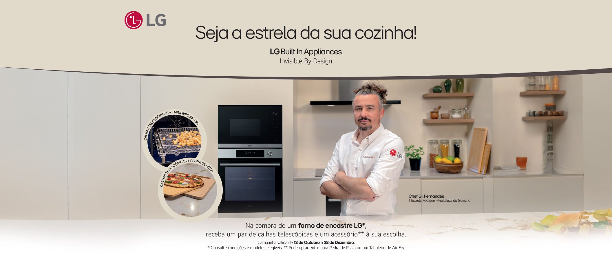 Na compra de um dos modelos, receba 1 par de calhas telescópicas e ainda escolha 1 acessório LG: Tabuleiro Air Fry ou Pedra de Pizza.