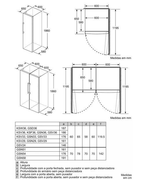 Aparelho (A x L x P sem puxador): 186 x 60 x 65 cm INFORMAÇÃO TÉCNICA