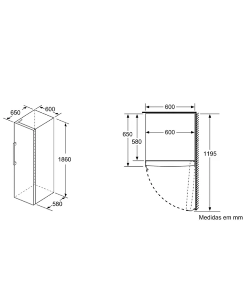 Aparelho (A x L x P sem puxador): 186 x 60 x 65 cm INFORMAÇÃO TÉCNICA
