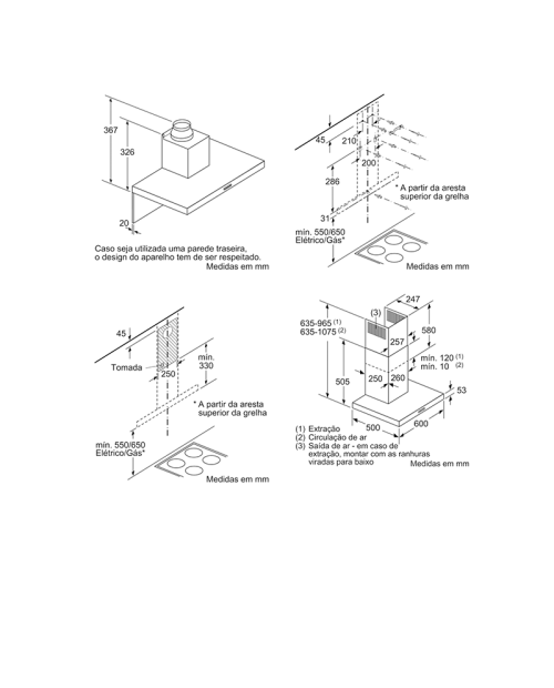 Medidas do aparelho em saída de ar (AxLxP): 635-965 x 600 x 500 mm