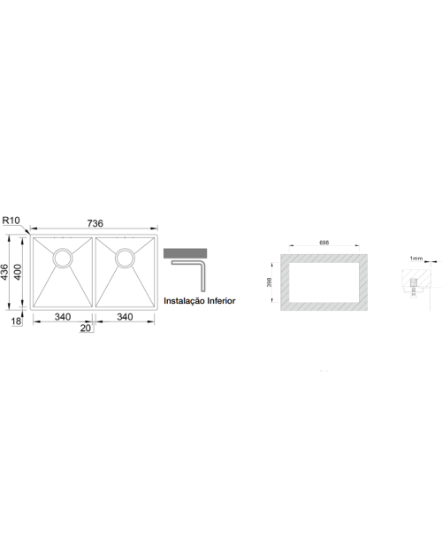 Medida das cubas: 340x400/340x400mm