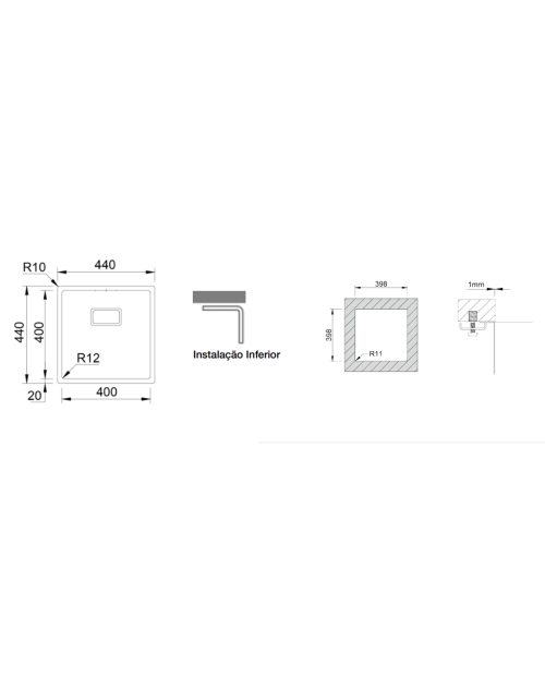 Medida das cubas: 400x400mm
