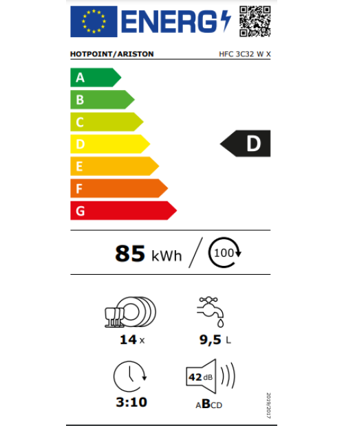 Consumo de energia por 100 ciclos programa Eco (EU 2017/1369) : 85