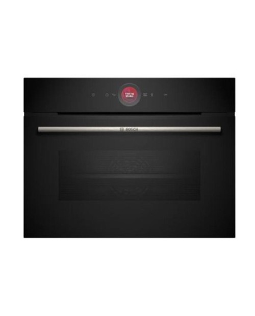 SER8, Forno compacto multifunções, 45 cm, vidro preto, 47 litros, A+, TFT-Touchdisplay, Home Connect, 12 modos de aquecimento, Função Assist (assistente de cozinha), Função Air Fry (tabuleiro especial HEZ629070 disponível como acessório), limpeza pirolítica & assistente de limpeza, SoftClose&SoftOpen, porta com 4 vidros CoolTouch, relógio eletrónico (horas, alarme, programação de início e fim de cozedura)