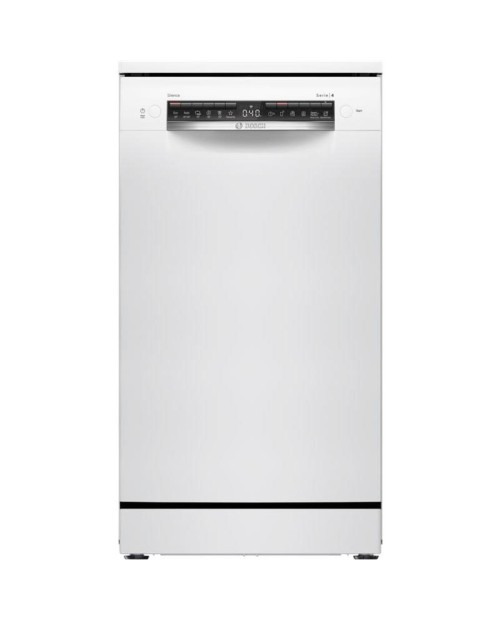 Máquina de lavar loiça de instalação livre de 45 cm de largura, SER4, branco, Home Connect, Classe Energética D, 6,7 litros, 45 dB, 10 talheres, sistema de secagem EfficientDry, 6 programas, 5 opções, sistema de cestos Flex, RackMatic, gaveta Vario, display, cuba aço inox, 84,5 cm de altura