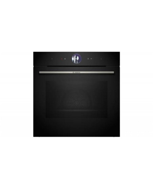 SER8, Forno multifunções AddedSteam (adição de vapor), 60 cm, vidro preto, 71 litros, A+, TFT-Touchdisplay Plus (65mm x 65mm), Home Connect, 20 modos de aquecimento, Função Assist (assistente de cozinha), Função Air Fry (tabuleiro especial HEZ629070 disponível como acessório), limpeza EcoClean (parede posterior) & assistente de limpeza, SoftClose&SoftOpen, porta com 3 vidros CoolTouch, relógio eletrónico (horas, alarme, programação de início e fim de cozedura), iluminação LED