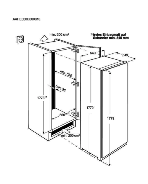 Dimensões de encastre (AxLxP), em mm: 1780x560x550