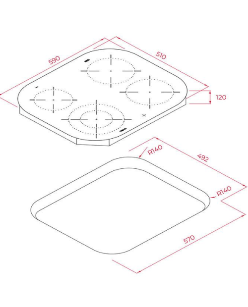 4 zonas (Ø 210/120 mm + Ø 180 mm + Ø 180 mm + Ø 145 mm)