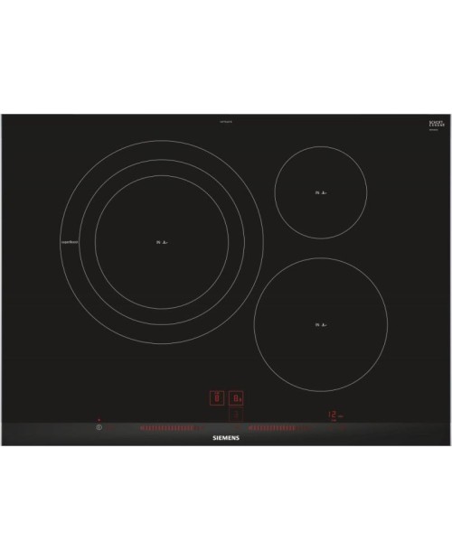 Placa flexInduction de 70cm, Design Comfort, IQ300, 3 zonas (1 tripla 32cm), dual lightSlider, fryingSensor, powerBoost, shortBoost, manter quente, programação do tempo, reStart, quickStart, ind. consumo energia