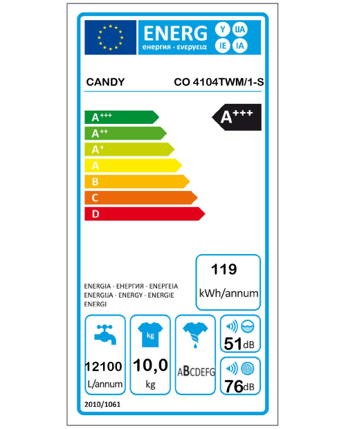 MÁQUINA DE LAVAR ROUPA CANDY - CO 4104 TWM6/1-S