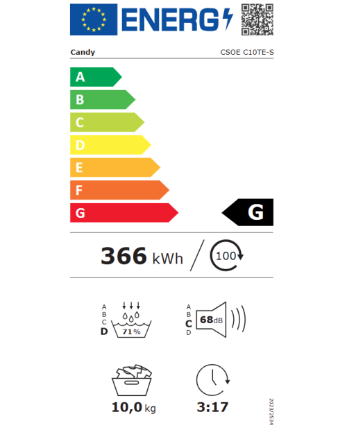 Consumo de energia do secador elétrico, carga completa - NOVO (2010/30/EU): 5,7