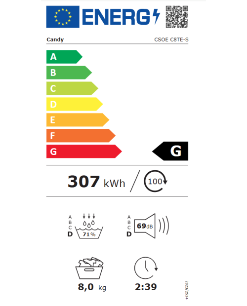 Consumo de energia do secador elétrico, carga completa - NOVO (2010/30/EU): 4,7