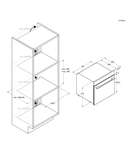 Volume útil (da cavidade) - cavidade 1: 78lts