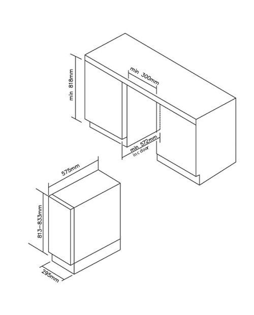 Dimensões necessárias para o encastre AxLxP: 81,8x30x57,2 cm