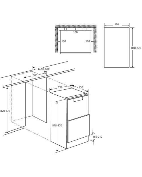 Dimensões necessárias para o encastre AxLxP: 82-87,2x60x60 cm