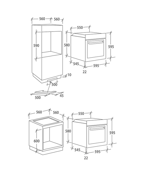 Dimensões necessárias para o encastre AxLxP: 59x56x56 cm