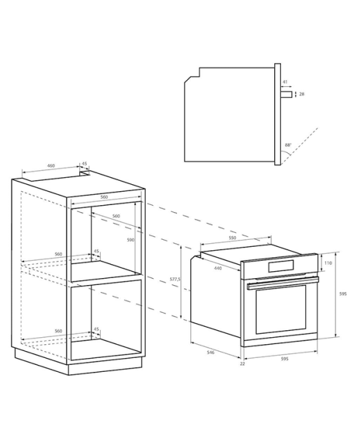 Dimensões necessárias para o encastre AxLxP: 59x56x56 cm