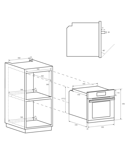 Dimensões necessárias para o encastre AxLxP: 59x56x56 cm