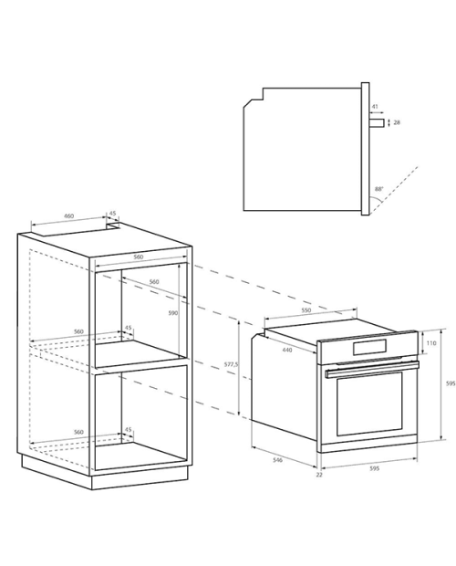 Dimensões necessárias para o encastre AxLxP: 59x56x56 cm