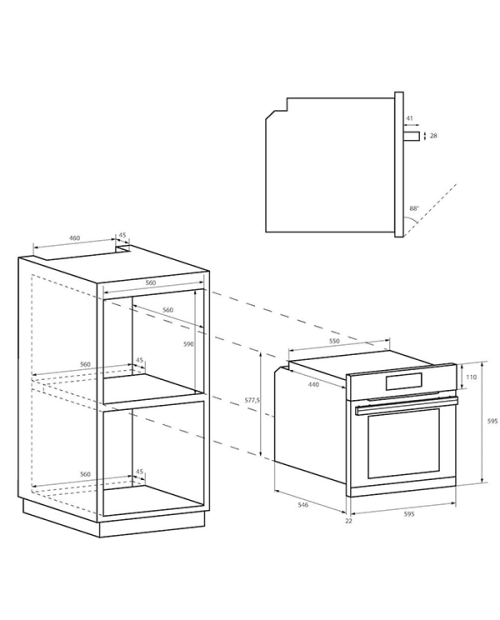 Dimensões necessárias para o encastre AxLxP: 59x56x56 cm