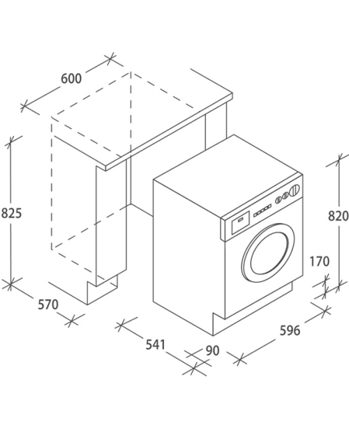 Dimensões para o encastre AXLXP: 82,5x60x57 cm