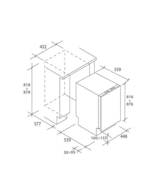 Dimensões necessárias para o encastre AxLxP: 82/88,5x45x58 cm