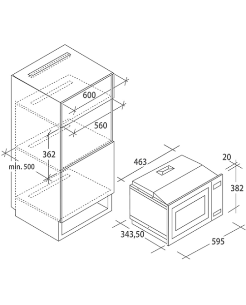 Dimensões necessárias para o encastre AxLxP: 36,2x56x34,4 cm