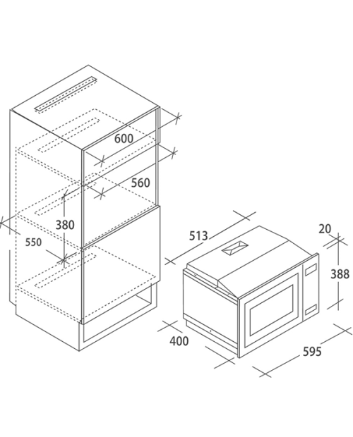 Dimensões necessárias para o encastre AxLxP: 38X56X55 cm
