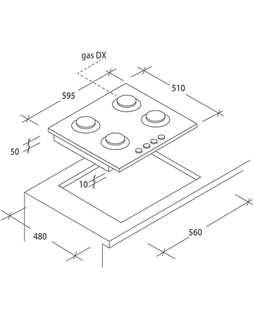 Dimensões necessárias para o encastre LxP: 56x48 cm