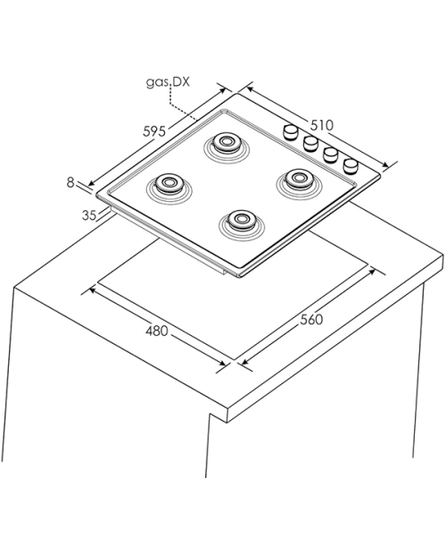 Dimensões necessárias para o encastre LxP: 56x48 cm