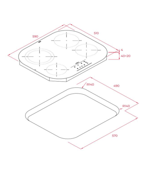 4 zonas de cozinhado: 1 (Ø 145 mm) + 1 (Ø 160 mm) + 1 (Ø 180 mm) + 1 (Ø 180/210 mm)