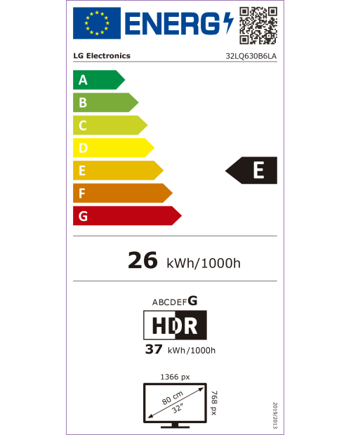 Consumo energético em HDR por 1000 horas: 37 kWh