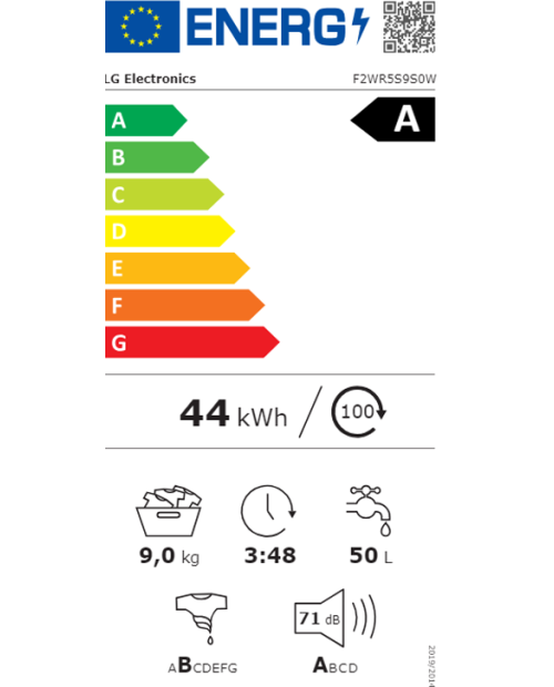 Consumo energético por 100 ciclos: 44 kWh