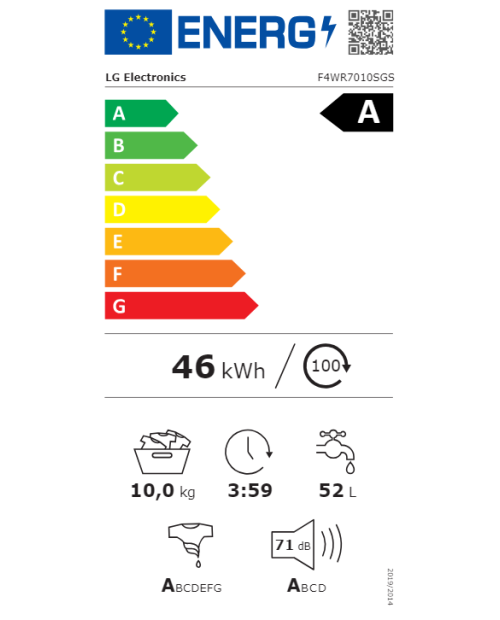 Consumo energético por 100 ciclos: 46 kWh