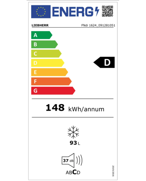 Consumo de energia ano / 24 h: 148 / 0,405 kWh