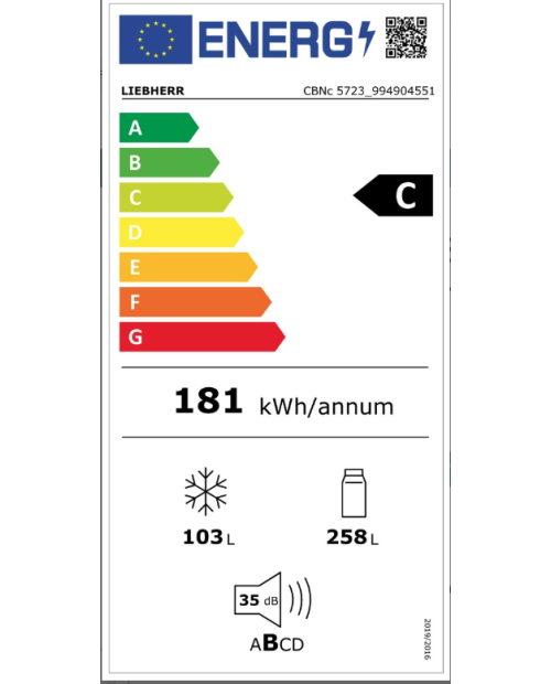 Consumo de energia ano / 24 h: 181 / 0,495 kWh