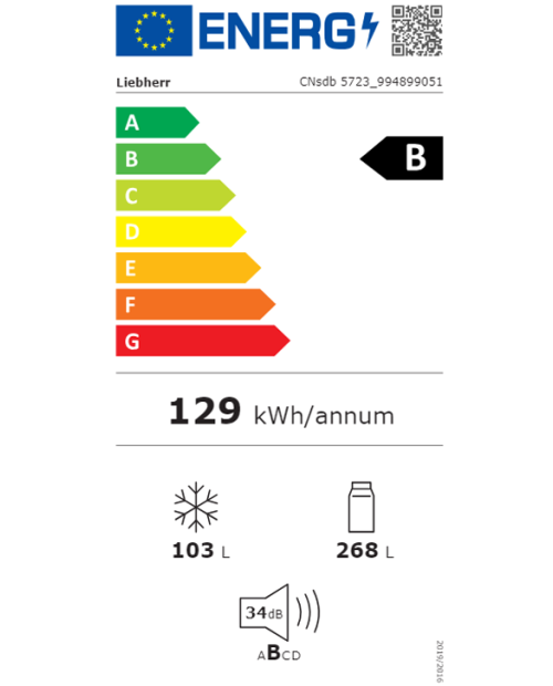 Capacidade útil: Refrigerador: 267,9 l / Congelador: 103 l
