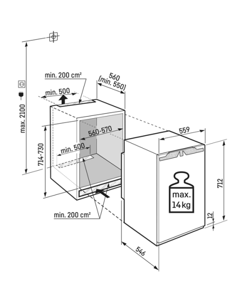 Dimensões de abertura em cm (A / L / P): 71,4-73 / 56-57 / min. 55
