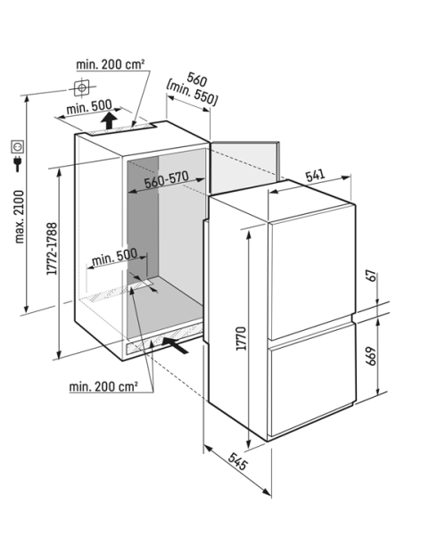 Dimensões de abertura em cm (A / L / P) 177,2-178,8 / 56-57 / min. 55