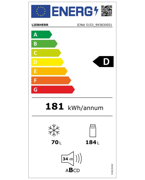 Consumo de energia ano / 24 h: 181 / 0,495 kWh