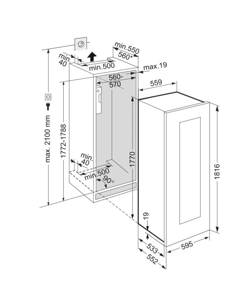 Dimensões de abertura em cm (A / L / P) 177,2-178 / 56-57 / min. 55