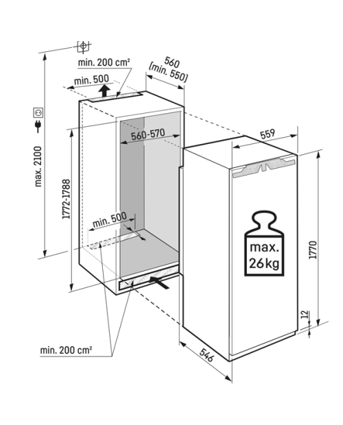 Dimensões de abertura em cm (A / L / P) 177,2-178,8 / 56-57 / min. 55