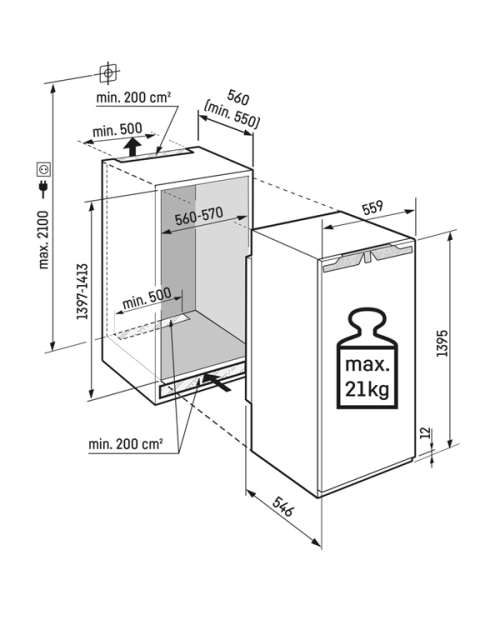 Dimensões de abertura em cm (A / L / P) 139,7-141,3 / 56-57 / min. 55