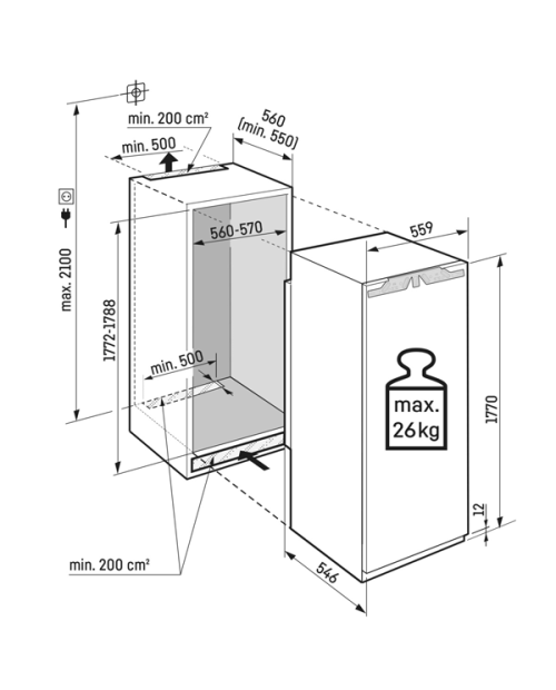 Dimensões de abertura em cm (A / L / P) 177,2-178,8 / 56-57 / min. 55