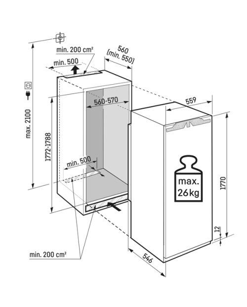 Dimensões de abertura em cm (A / L / P) 177,2-178,8 / 56-57 / min. 55